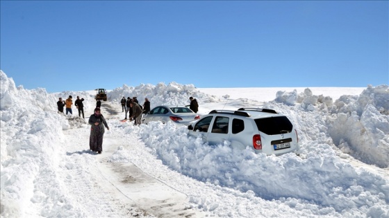 Durumun jandarmaya bildirilmesi üzerine bölgeye sevk edilen İl Özel İdaresi ekipleri, kar kalınlığının yer yer 5-6 metreyi bulduğu bölgedeki araçlara ulaşabilmek için yoğun çaba harcadı.