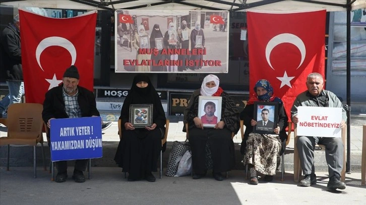 Muş'ta çocuklarının, terör örgütü PKK tarafından dağa götürülmesinden DEM Parti'yi sorumlu tutan aileler, partinin il başkanlığı binası önündeki "evlat nöbeti"ni sürdürüyor.