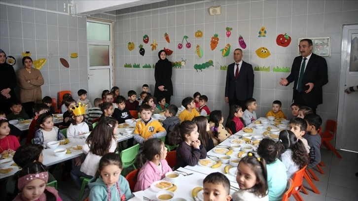 Muş Vilayetler Hizmet Birliği Anaokulu'nu ziyaret eden İl Milli Eğitim Müdürü Enver Kıvanç, çocuklarla yemek yedi, çalışma hakkında görevlilerden bilgi aldı.