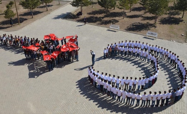 MUŞ (AA) - Muş'un Malazgirt ilçesinde ortaokul öğrencileri, ay yıldız koreografisi oluşturarak Zeytin Dalı Harekatı'na destek verdi.