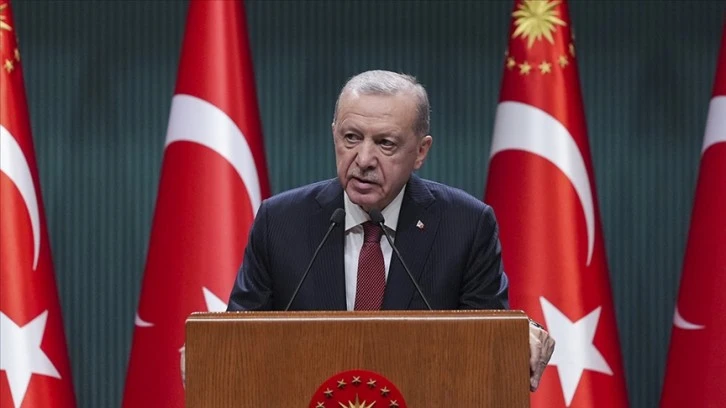Cumhurbaşkanı Recep Tayyip Erdoğan, Cumhurbaşkanlığı Külliyesi'nde Kabine Toplantısının ardından açıklamalarda bulunuyor.