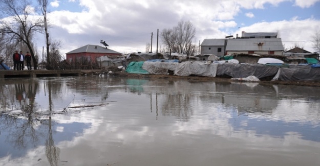 Havaların ısınmasıyla birlikte erimeye başlayan kar kütleleri nedeniyle Muş merkeze bağlı Kıyık köyü sel suları altında kaldı.