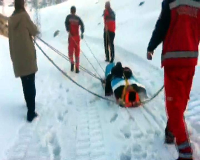 yaklaşık 100 kilo ağırlığındaki hastayı sedyeye aldılar ve kayalıkları geçtiler sonra ekipler sedyeyi kızak yaparak ilerledi.