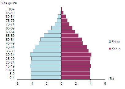 Ülkemizde 15-64 yaş grubunda bulunan (çalışma çağındaki) nüfusun oranı 2013 yılına (%67,7) göre 0,1 puan artarak %67,8 (52 640 512 kişi) olarak gerçekleşti. Çocuk yaş grubundaki (0-14) nüfusun oranı ise %24,3’e (18 862 430 kişi) gerilerken, 65 ve daha yukarı yaştaki nüfusun oranı da yaklaşık %8’e