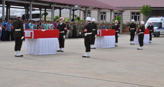 Mardin 70. Piyade Tugay Komutanlığı Selen Kışlası'nda düzenlenen tören cenazelerin getirilmesi ile başladı, saygı duruşu ve şehitlerin öz geçmişlerinin okunmasıyla devam etti. Ardından silah arkadaşları adına konuşan Yarbay Kubilay Karadeniz, "Türk Silahlı Kuvvetleri olarak bölücü terör örgütünün amaçlarına ulaşmasını engellemek ve kanun hakimiyetini sağlamak maksadıyla görevimize daha artan bir inanç ve kararlılıkla devam edeceğiz. Kahraman şehitlerimizin emaneti olan 'bayrak', 'vatan' için kutsal nöbet sırası bizde. Aziz şehitlerimiz, sizlere layık olmanın bilinci içinde dimdik vazife başındayız. Üzerinde yaşadığımız toprakların Türk yurdu olarak kalması, uzun süren mücadelenin, gösterilen özverili çabaların ve hayatlarını bu uğurda kaybeden aziz şehitlerimizin eseridir. Gururumuz ve kıvanç kaynağımız olan şehitlerimiz birlik ve bütünlüğümüzün, yurt sevgimizin, özgürlük ve bağımsızlığımızın simgeleridir" dedi.