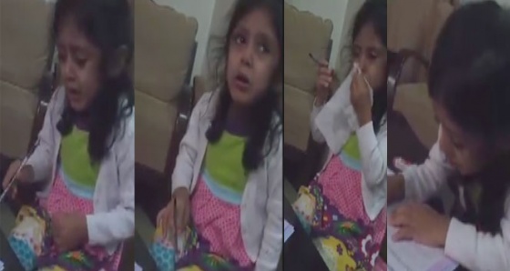 Ödev yapmak istemeyen sevimli kızın görüntüleri sosyal medyada çok beğeniliyor.