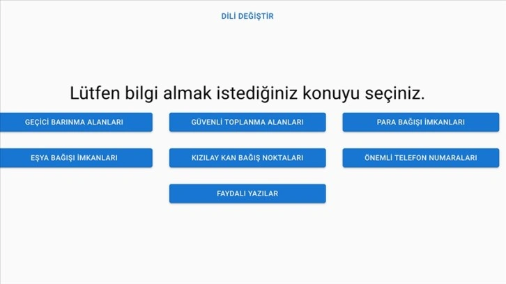 Malatya, Diyarbakır, Kahramanmaraş, Gaziantep, Adana, Hatay ve Şanlıurfa'daki güvenli toplanma alanlarına, Türk Kızılay'ın 81 ildeki kan bağışı merkezlerine, acil durumlarda aranabilecek önemli telefon numaralarına da site üzerinden ulaşılabiliyor.