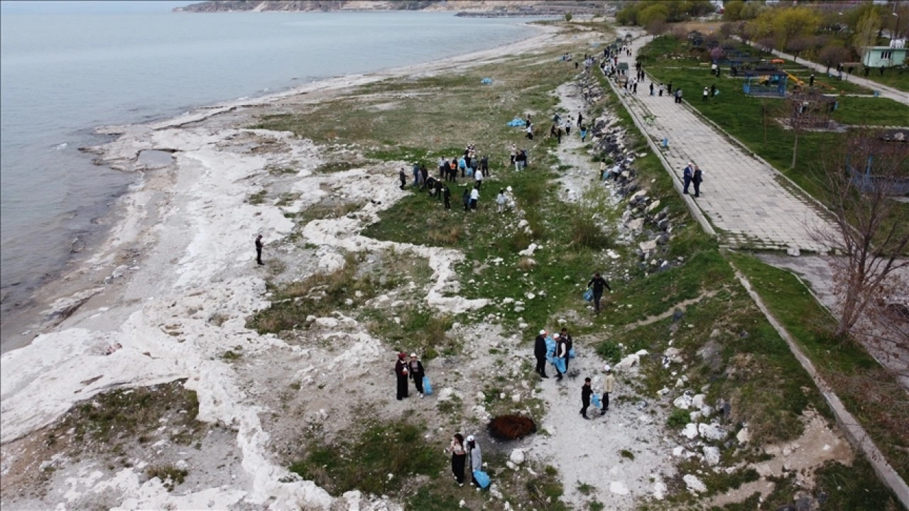 "Van Gölü ilçemizin vitrini, sahip çıkalım", "Suyu kirletmek, geleceği kirletmektir", Sahip çık çevreye, umut ol geleceğe" yazılı pankartlar taşıyan öğrenciler ve diğer katılımcılar sahilde çöp topladı.