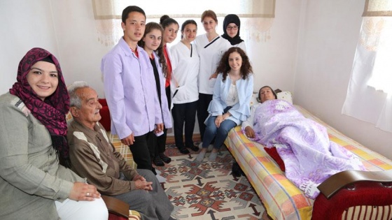 Proje çerçevesinde öğretmenleri rehberliğinde kırsal alandaki yaşlı ve hastaları ziyaret eden öğrenciler, ihtiyaç sahibi ailelere tansiyon ve şeker ölçümü, yara bakımı, saç ve sakal tıraşı yapıyor.