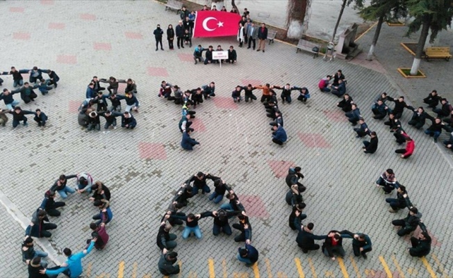 BALIKESİR (AA) - Balıkesir İmam Hatip Lisesi'nde yaklaşık 50 öğrenci, okulun bahçesinde bir araya gelerek "Zeytin Dalı Harekatı" koreografisi oluşturdu.