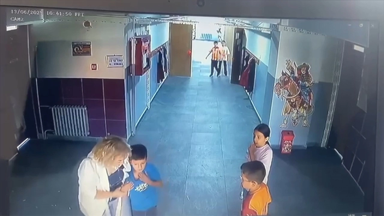 Yaşananlar, okulun güvenlik kamerasınca kaydedildi.