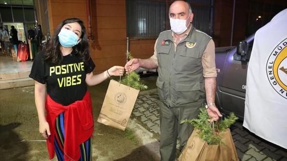 Gençlik ve Spor İl Müdürü Mustafa Genç ile Türk Kızılay ve AFAD görevlileri tarafından evlerine gönderilen vatandaşlara fidan hediye edildi.