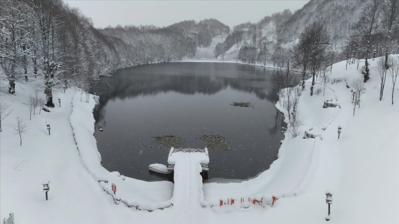 Kent merkezine 17 kilometre uzaklıktaki tabiat parkı bölgesinde kar yağışı 3 gündür aralıklı etkili oluyor.