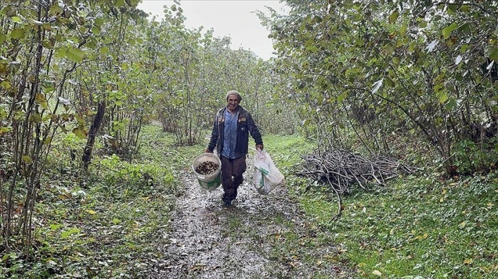Karadeniz'de ağustos ayında başlayan ve büyük bölümü hasat edilen fındıkta, sonbahar gelmesine rağmen bazı kesimlerde fındık toplama mesaisi sürüyor.