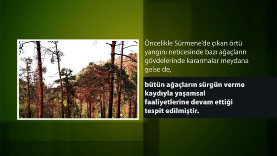 "Haluk Pekşen'in bahse konu olan ve tamamen yalan sözlerden oluşan değerlendirmelerinden biri, Trabzon'un Sürmene ilçesi, Çamburnu Mevkisi'nde geçtiğimiz aylarda çıkan yangından sonra yapılaşma olduğu iddiasıdır. Bu alanda yangından dolayı herhangi bir ağaç eksilmesi ve kesilmesi kesinlikle söz konusu değildir. Sayın Bakanımızın beyan ettiği gibi orman yangınlarında zarar gören alanların 1 metrekaresi dahi yapılaşmaya açılmamış ve aynı sene içerisinde yeniden ağaçlandırılmaya başlanmıştır. Burada da bu ilkeden taviz verilmemiştir. Örtü yangını sonrasında yerinde yapılan incelemelerde ağaçların zarar görmediği, haliyle yeni bir dikim ihtiyacı olmadığı tespit edilmiştir. Yangının olduğu yerde herhangi bir yapılaşma asla söz konusu değildir. Alandaki yapılar, söz konusu örtü yangınından önce yapımına başlanan orman köşklerinden ibarettir ve orada meydana gelen yangınla hiç ama hiç alakası olmayan bir durumdur."