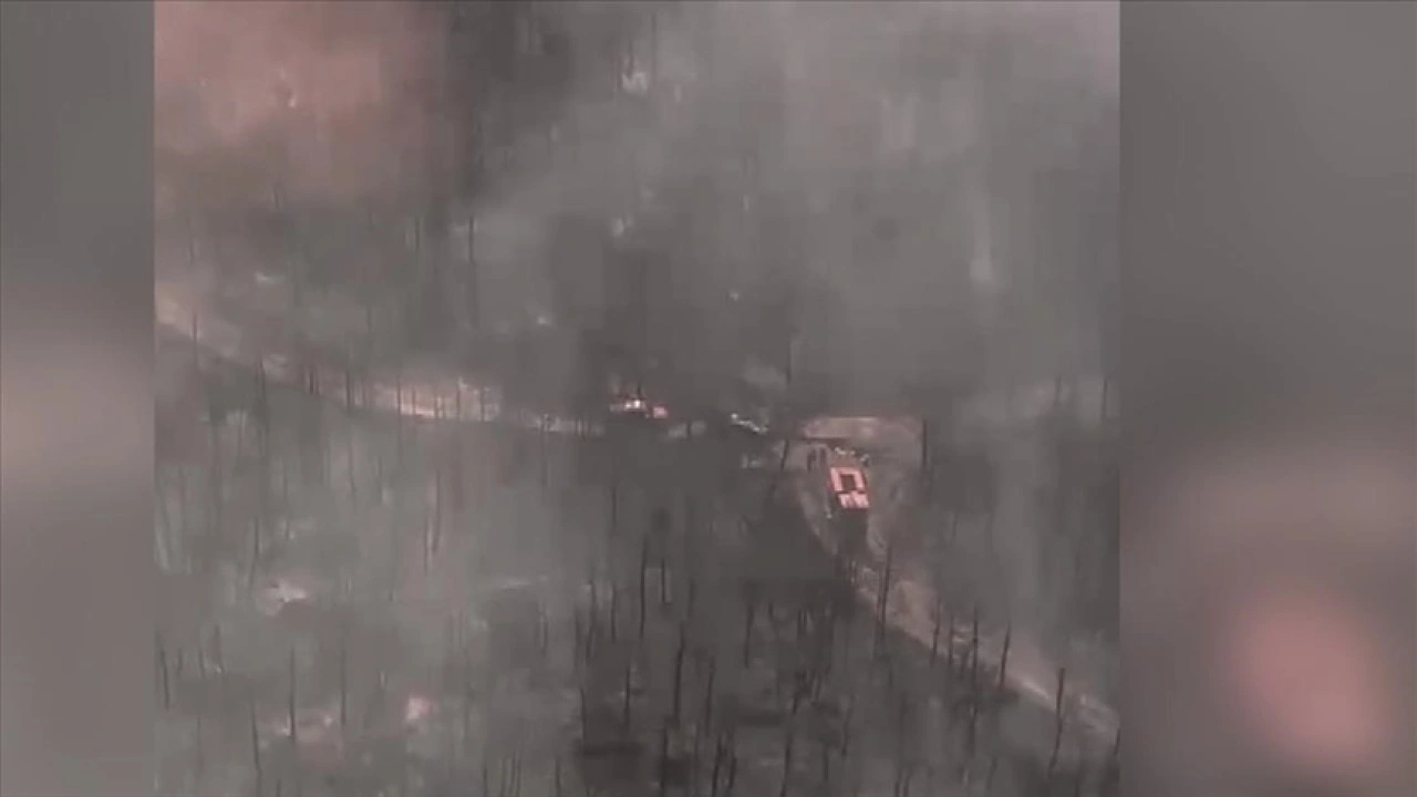 Eskişehir'deki orman yangınına müdahale eden 5'i orman işçisi, 5'i AKUT çalışanı 10 kişi şehit olduGörüntülerde orman içindeki yolda duran araçlar ve çevresinde tamamen yanan ağaçlar yer aldı.