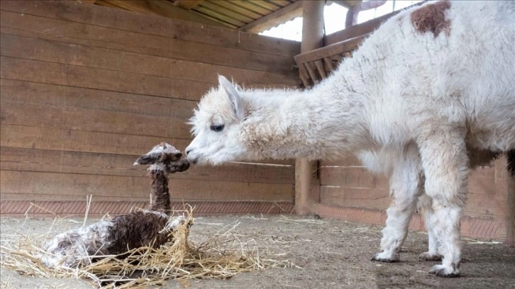 Veteriner hekim kontrolünde gerçekleşen doğumun ardından dünyaya gelen alpaka ile annesinin sağlık kontrolleri yapıldı.