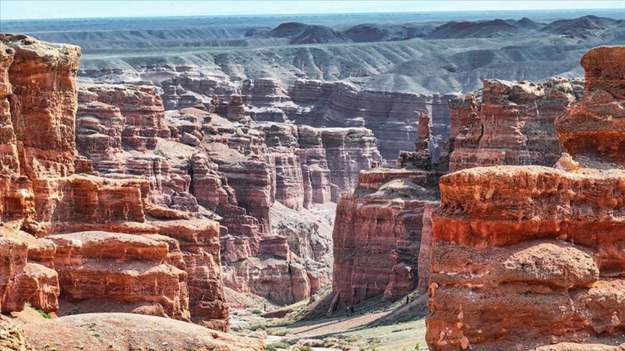 Amerika Birleşik Devletleri'ndeki Grand Canyon National Park'taki kanyona benzetilen Charyn Kanyonu, Charyn Nehri'ni takip ediyor.