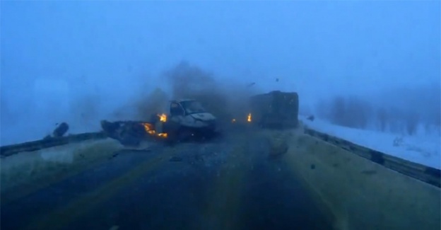 Rusya’nın St. Petersburg şehrinde bir yolcu otobüsü, hatalı sollama yaparak şeridine geçen kamyonetle çarpıştı. Çarpışmanın etkisiyle ortalık adeta savaş alanına dönerken, iki araçta da küçük çaplı yangın çıktı. Neyse ki bu feci kazada can kaybı yaşanmadı.