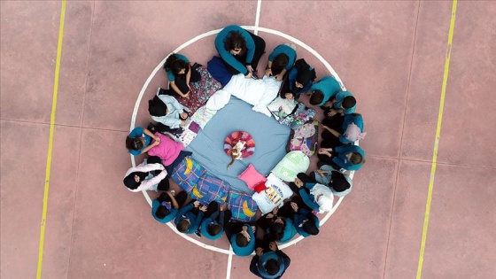 Ders aralarında öğretmenlerinin nezaretinde evlerinden getirdikleri kumaş, sünger ve pamuklarla minder yapan öğrenciler, hummalı şekilde çalışıyor.