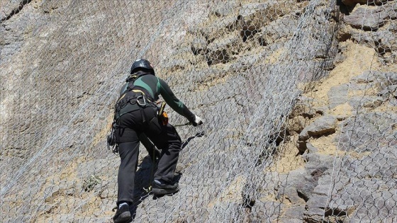 Çelik ağ örtüleme işlemi öncesi yamaçtaki düşme ihtimali yüksek kayaları temizlediklerini aktaran İskender, çok tehlikeli ve zor bir mesleklerinin olduğunu, bu nedenle de uluslararası standartlarda profesyonel bir ekiple bu işi sürdürdüklerini anlattı.