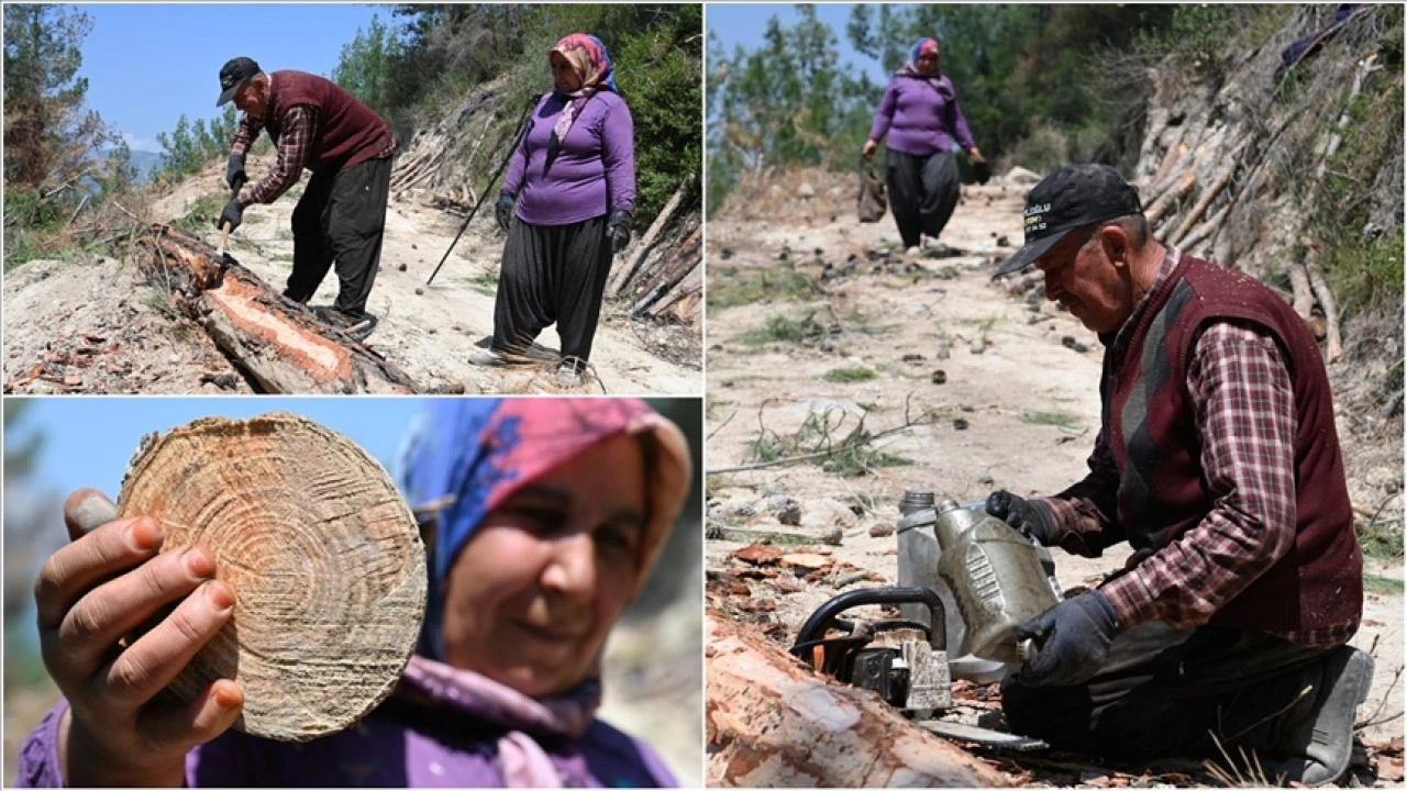 Menziliye Kaya da eşiyle el birliğiyle mesai yaptıklarını belirterek, "Yıllardır eşime yardım ediyorum. Beraber ekmeğimizi kazanıyoruz. Sağlığımız el verdikçe ormancılığı sürdüreceğiz." dedi.