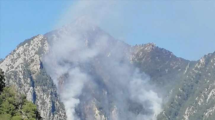 Sarp arazi yapısı nedeniyle ekiplerin karadan ulaşmakta güçlük çektiği alevler, helikopterle yapılan çalışmayla kontrol altına alınmaya çalışılıyor.