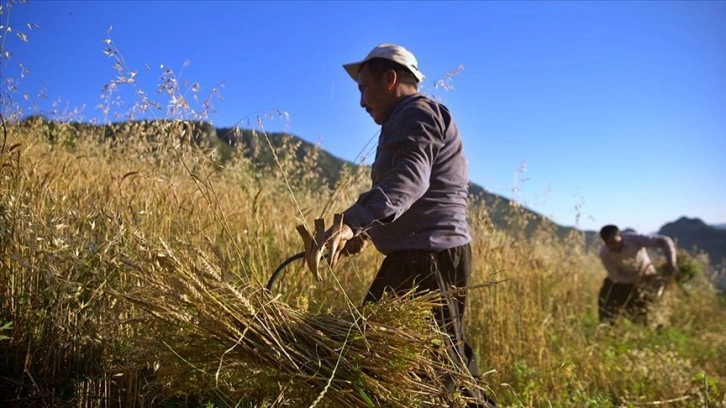 Tarlaya çok dik ve taşlı olduğu için biçerdöverin giremediğini, traktörün de buğdaya zarar verdiğini dile getiren Öztanrıkulu, "Biz de kendi elimizle hiç zarar vermeden her tanesini topluyoruz. Eğer 10 kişi olursak 10 dönüm tarlayı sabahtan akşama 1 günde hasat edebiliyoruz." dedi.