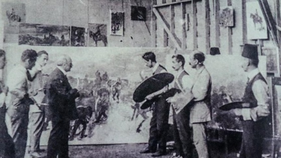 "Yerli ressamların yaptığı mevcut resimlerin yanı sıra hükümet, dönemin meşhur ressamlarının çalıştığı bir atölye kuruyor. Bazı ressamlar ise atölye dışında kendi mekanlarında çalışmalarını sürdürüyor. İbrahim Çallı, Namık İsmail, Diyarbakırlı Tahsin, Ali Cemal Bey, Ruhi Bey, Hikmet Bey, Ömer Adil Bey, bizzat savaşa katılan ve savaş ortamını bilen Sami Bey ile Mehmet Ali Laga Bey cephelerdeki çatışmaları tuvaline aktarırlar. Hükümet, ressamlar için askeri malzemeleri temin ederken çizim için gereken malzemeler de Almanya'dan getirtiliyor. Zor şartlarda 3 aylık süren çalışmalar sonucunda hazırlanan tablolar önce 1917'de Galatasaraylılar Yurdu'nda 'Savaş Resimleri Sergisi' adıyla ziyarete açılıyor.