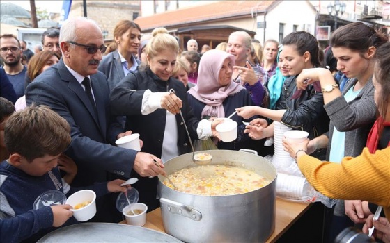 Bursa Büyükşehir Belediyesinin 9 ülkede yaklaşık 40 bin kişiye aşure dağıttığı etkinliklerden biri de Bosna Hersek'te yapıldı.