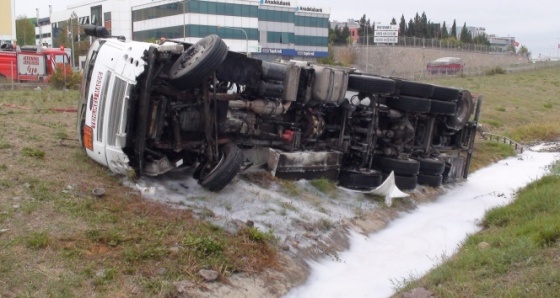 Olay yerinde ekiplerin çalışmalarını izleyen bir vatandaş, “Kaza nasıl oldu bilmiyorum. Şoför burada yok ama şoförün durumu iyi. Kamyon mazot yüklü. Kamyon petrol ofisinin dolum yerinden geliyordu. Hiçbir sıkıntı yok” dedi.