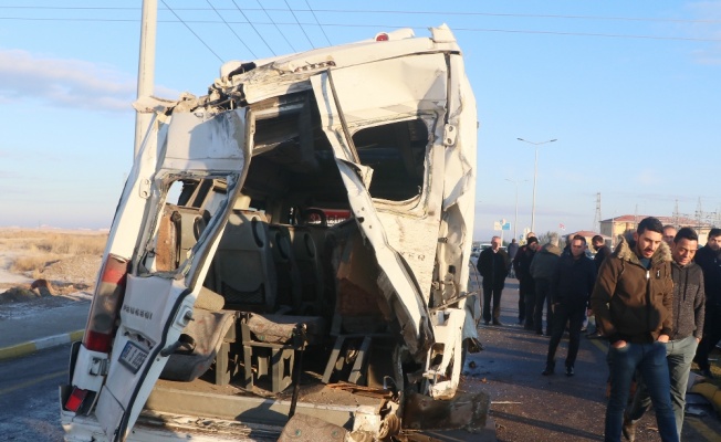 Aksaray’da servis minibüsü ile servis otobüsünün çarpışması sonucu 1’i ağır 17 kişi yaralandı.