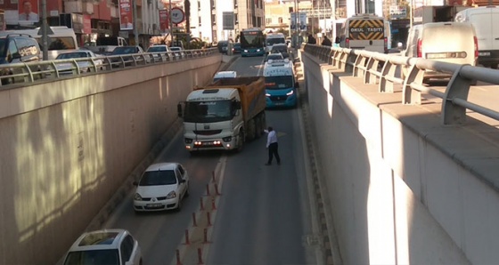 Daha sonra alt geçidin ilk noktasına giden muavin yolu trafiğe kapatarak geçişlerin bir diğer yoldan yapılmasını istedi.