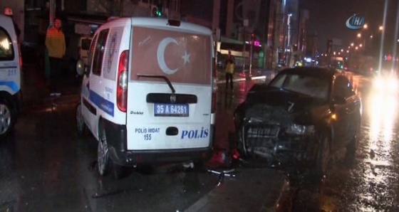 Kaza, gece saatlerinde Yeşillik Caddesi Çamlık kavşağında meydana geldi. Edinilen bilgiye göre, Karabağlar yönünden Konak istikametine seyir halinde olan Mehmet Taylan Doğan yönetimindeki 16 MCB 22 plakalı otomobil iddialara göre kırmızı ışık ihlali yapınca, polis memuru Himmet Sargın(42) yönetimindeki 35 A 64261 plakalı polis otosuna çarptı. Kazada polis otosundaki Sargın ve Mehmet Zeki Atalay (46), otomobil sürücüsü Mehmet Taylan Doğan yaralandı. Kazayı gören diğer sürücüler ise durumu 112 sağlık ve polis ekiplerine bildirdi. İhbar üzerine olay yerine gelen sağlık ekipleri tarafından, polis memuru Atalay ve Sargın, Bozyaka Eğitim ve Araştırma Hastanesine, otomobil sürücüsü Doğan ise Dokuz Eylül Üniversitesi Hastanesi’ne kaldırıldı. İki hastanede de tedavi altına alınan yaralıların durumları iyi olduğu öğrenildi.