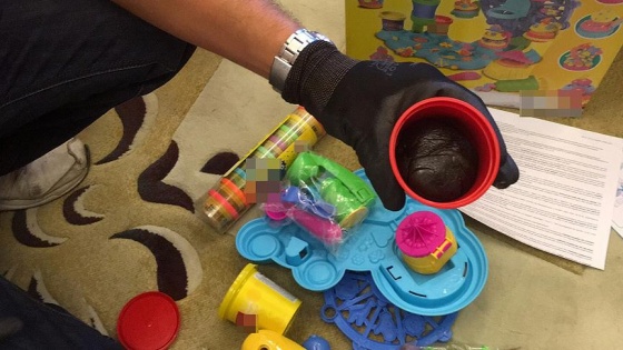 Bakırköy'de bir kargo şirketine düzenlenen operasyonda, yurtdışına gönderilmek üzere hazırlanmış oyun hamuru setinin içinde afyon sakızı ele geçirildi.