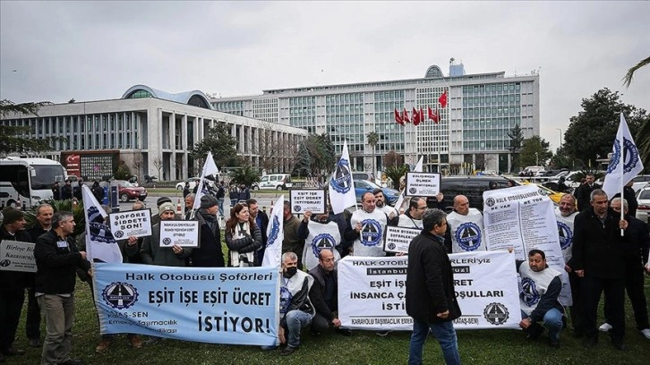 "Eşit işe eşit ücret, insanca çalışma koşulları istiyoruz" yazılı pankart açan şoförler, İBB'ye tepki gösterdi.