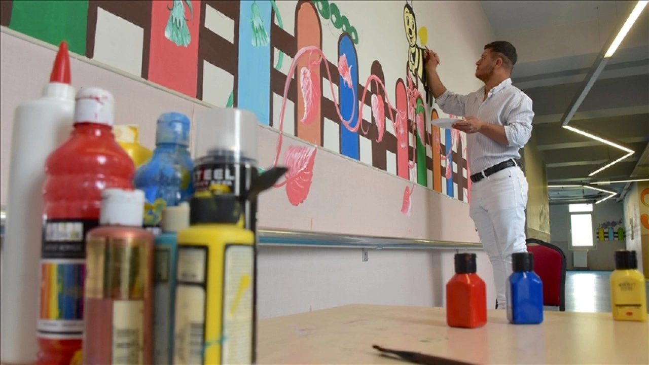 Okul yönetiminin desteğiyle gerçekleştirilen etkinlikte, down sendromlu, otizmli ve zihinsel engelli öğrenciler, kendi hayal dünyalarını yansıtan çizimlerle okulun koridorlarını, yemekhane ve diğer alanlardaki duvarları boyadı.