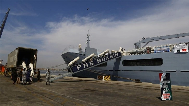 Pakistan Deniz Kuvvetlerine ait ilk gemi, 28 Şubat’ta 1000 ton yardımla Türkiye’ye gönderilmişti. 8 bin 200 çadır taşıyan sivil kargo gemisi, 9 Mart’ta Karaçi’den Türkiye’ye hareket etmişti.