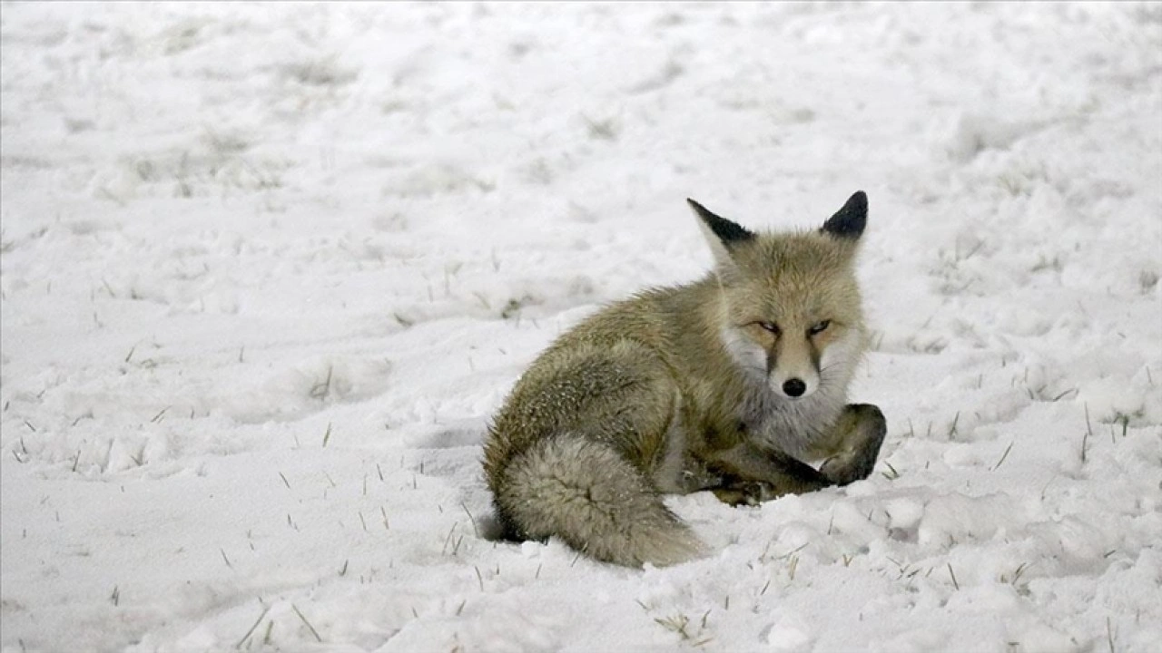 Kar yağışı sonrası yuvalarından çıkan tilkiler, dakikalarca kayak pistlerinde ve çevresinde koşturdu.