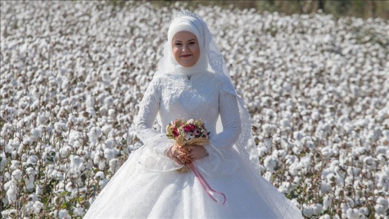 Türkiye'nin önemli pamuk üretim merkezlerinden Aydın'ın Söke ilçesindeki pamuk tarlaları, düğün fotoğrafçılarının stüdyosu oldu.