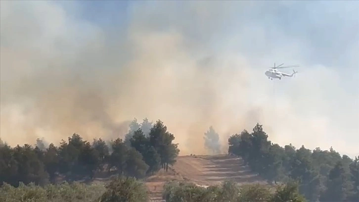 Ekipler, rüzgarın etkisiyle yayılan yangını kontrol altına almak için çalışmalarını sürdürüyor.
