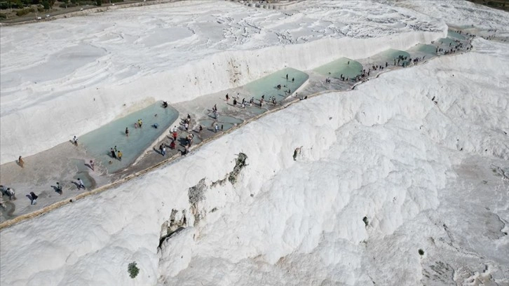Beyaz travertenleri, Hierapolis Antik Kenti ve Kleopatra Havuzu ile ziyaretçilerine benzersiz bir deneyim sunan Pamukkale Ören Yeri, dünyanın dört bir yanından ziyaretçilerini kendisine çekmeye devam ediyor.