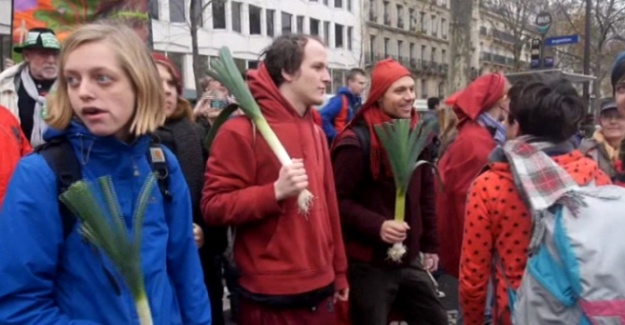 Fransa’nın başkenti Paris’te gerçekleştirilen terör kurbanlarını anma ve İklim Değişikliği Zirvesi kapsamında gerçekleştirilen gösteri yürüyüşüne bazı vatandaşlar ellerinde pırasalarla destek verdi.
