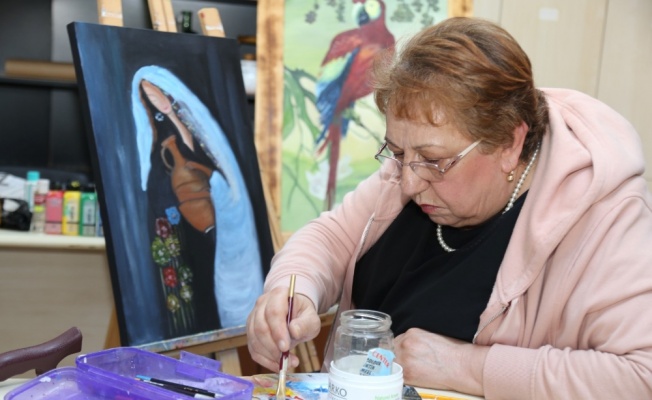 Kocaeli’de yaşayan 72 yaşındaki Özden Ateş, parkinson hastalığı nedeniyle elinde oluşan titremeleri tuval karşısında resim yaparak azaltıyor.