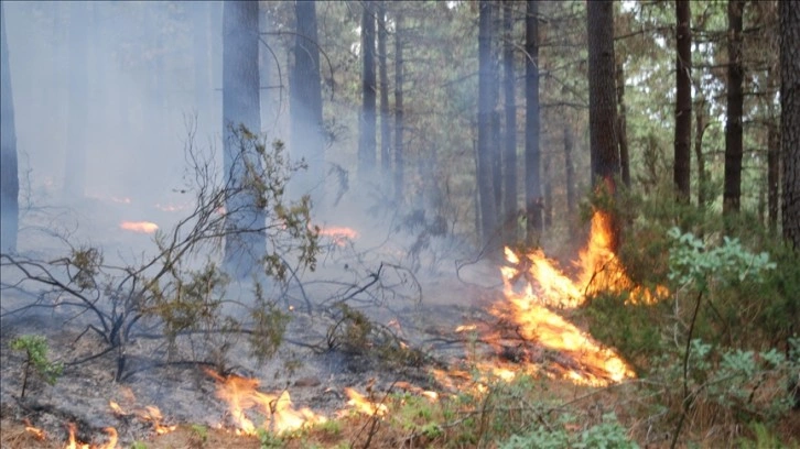 Öte yandan yangın söndürme helikopteri de havadan söndürme çalışmalarına destek veriyor.