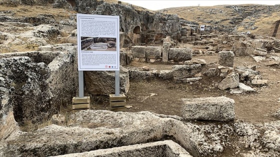 "Perre Antik kent 2020 kazısında 160 metre uzunluğunda ortaya çıkarılan merdiven yapısının hemen yan kısmında çıkan sanduka mezarda erkek iskeleti tespit edildi. İskelet 1500 yıl önce ölen birine ait.