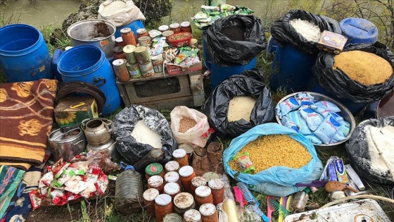 "Sığınaklarda 13 büyük tüp, 3 küçük tüp, 40 pil, 500 kilogram un, 100 kilogram pirinç, 100 kilogram bulgur, 100 kilogram makarna, 50 kilogram nohut, 50 kilogram fasulye, 5 kilogram pekmez, 100 kilogram küp şeker, 100 kilogram çay, 50 kilogram toz şeker, 15 kilogram yağ, 30 kilogram zeytin, 100 paket maya, 50 paket bal, 10 paket limon tuzu, 5 paket pul biber, 20 kuru fasulye konservesi, 32 ev yapımı konserve, 7 konserve salça, 50 hazır çorba ve 8 bezelye paketi, 20 battaniye, 2 top inşaat teli, 50 metre ip, 2 tüplü sac, tüplü ocak, 5 tencere, 2 çaydanlık, 10 diş fırçası, 50 metre şerit led lamba, dikiş takımı, kazma, testere, keser ve 4 pas sökücü sprey ele geçirilmiştir."