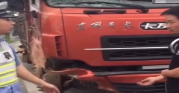 Bu ilginç görüntülerin adresi Çin. Yol kontrolü yapan trafik polisi belki de meslek hayatının en ilginç olayıyla karşılaştı. Zirar karayolunda seyreden bu kamyonun ön tekerlekleri yoktu. Sürücüyü araçtan indiren polis, karşılaştığı manzara karşısında şaşkınlığını gizleyemedi. Polis, sürücüye tepki gösterdikten sonra araç, garaja çekildi.