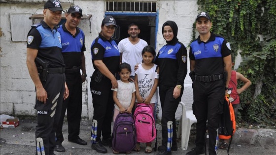Adana'da polisin, ekonomik durumu iyi olmayan ailelerin çocuklarına yaptığı çanta ve kırtasiye yardımı sırasında bir çocuk mutluluktan duygusal anlar yaşadı.