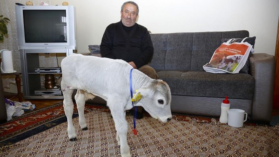 Merkeze bağlı Çamdere köyünde çiftçilik yapan Türkmen, kasım ayı sonunda prematüre doğan buzağıyı yaşatabilmek için evine götürdü.